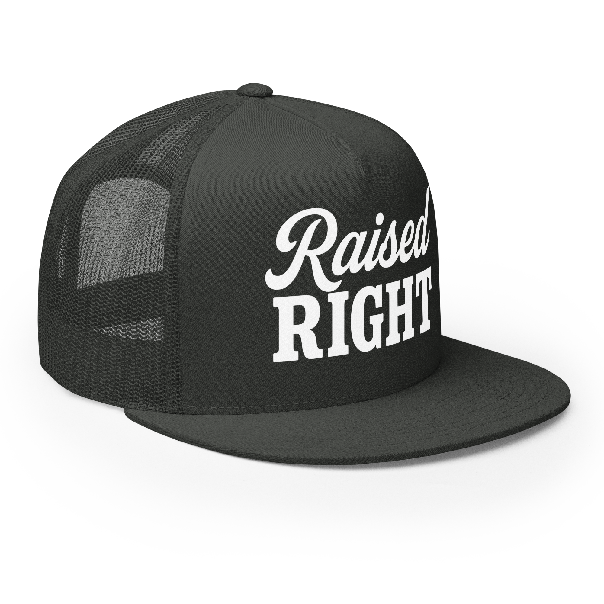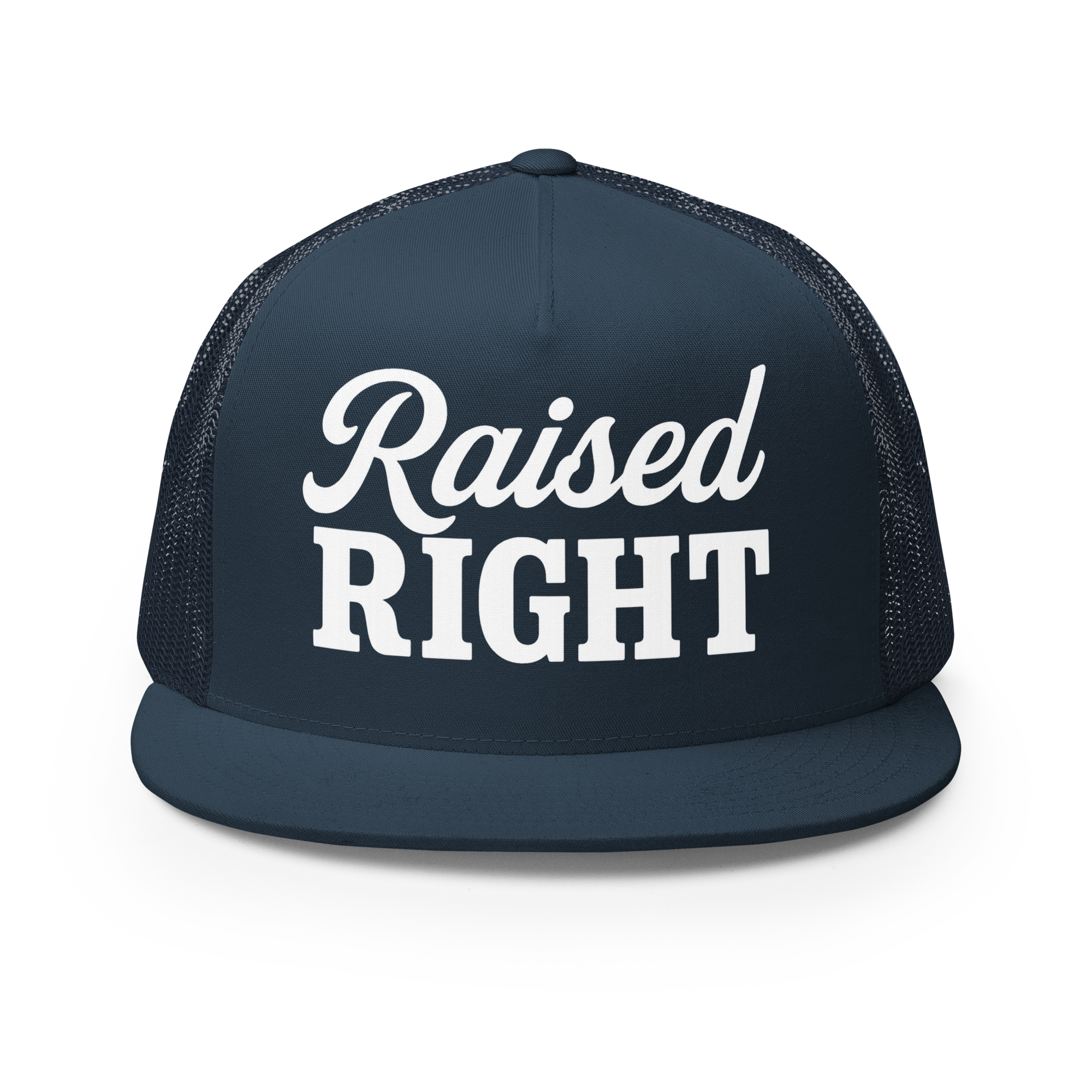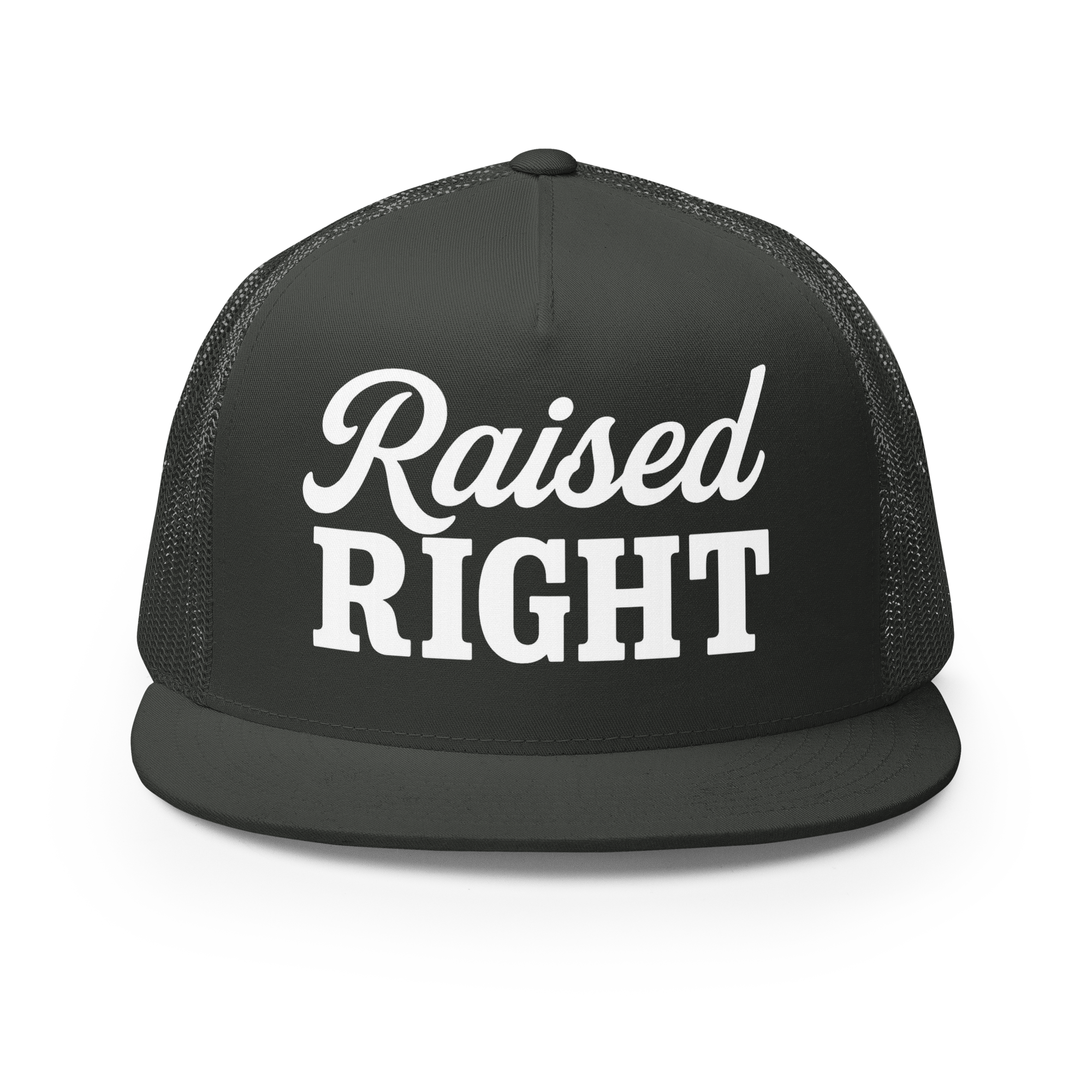 A classic trucker cap with a structured fit and bold Raised Right lettering that says exactly what it means. Built for everyday wear with a breathable mesh back and snapback closure—easy, timeless, and made for long days and louder opinions.