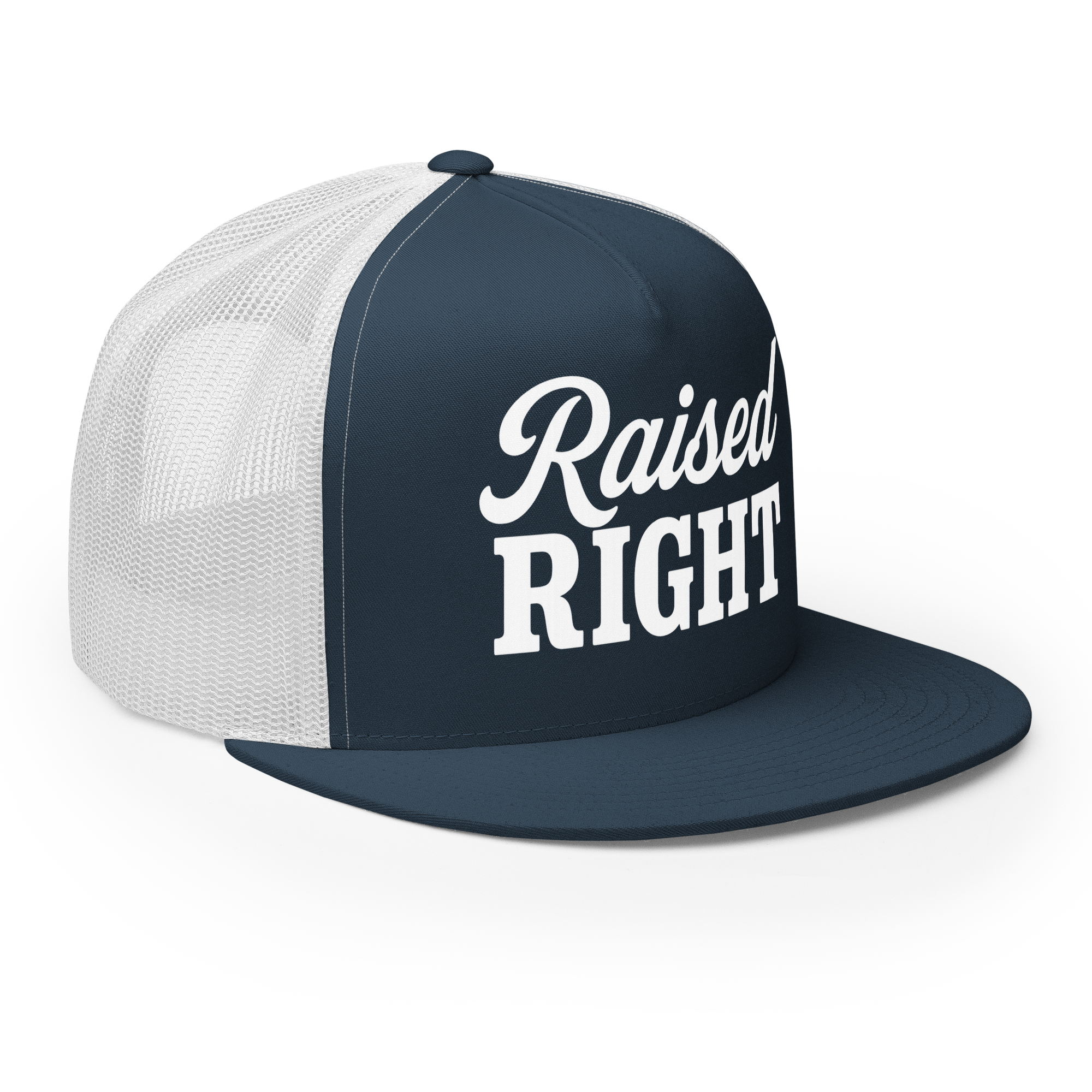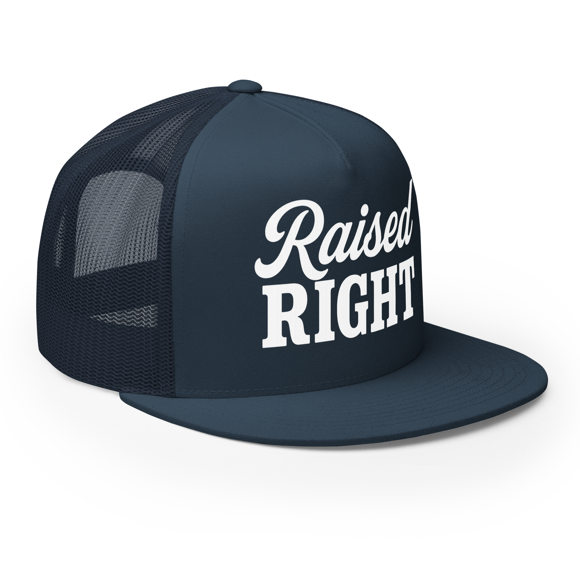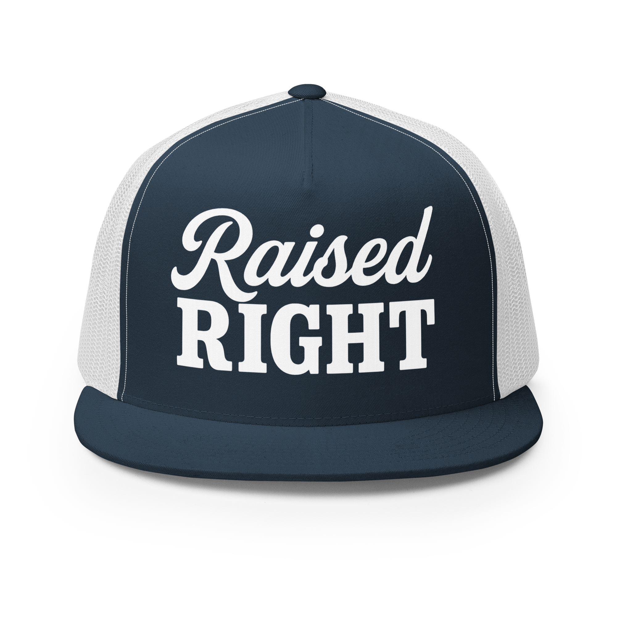 A classic trucker cap with a structured fit and bold Raised Right lettering that says exactly what it means. Built for everyday wear with a breathable mesh back and snapback closure—easy, timeless, and made for long days and louder opinions.