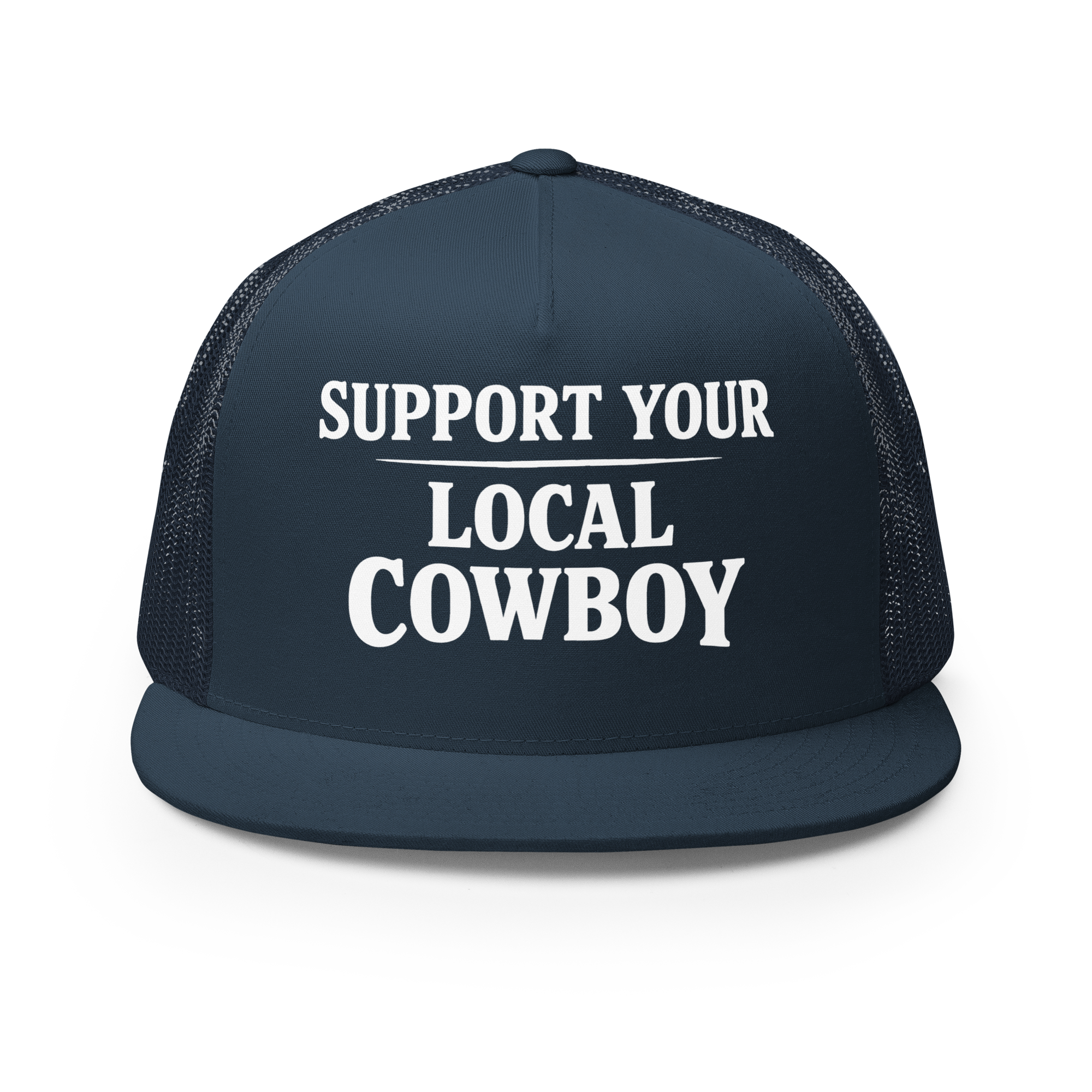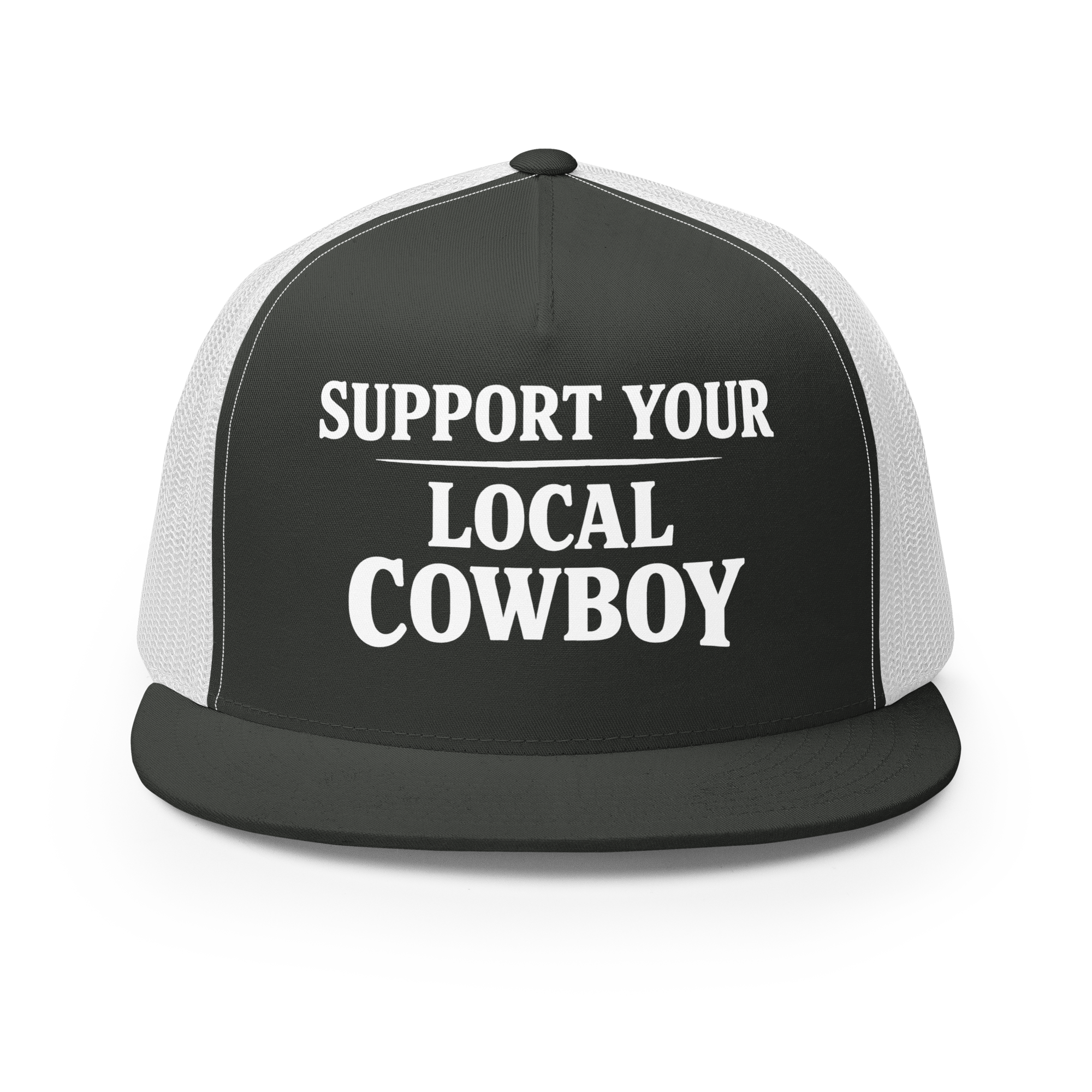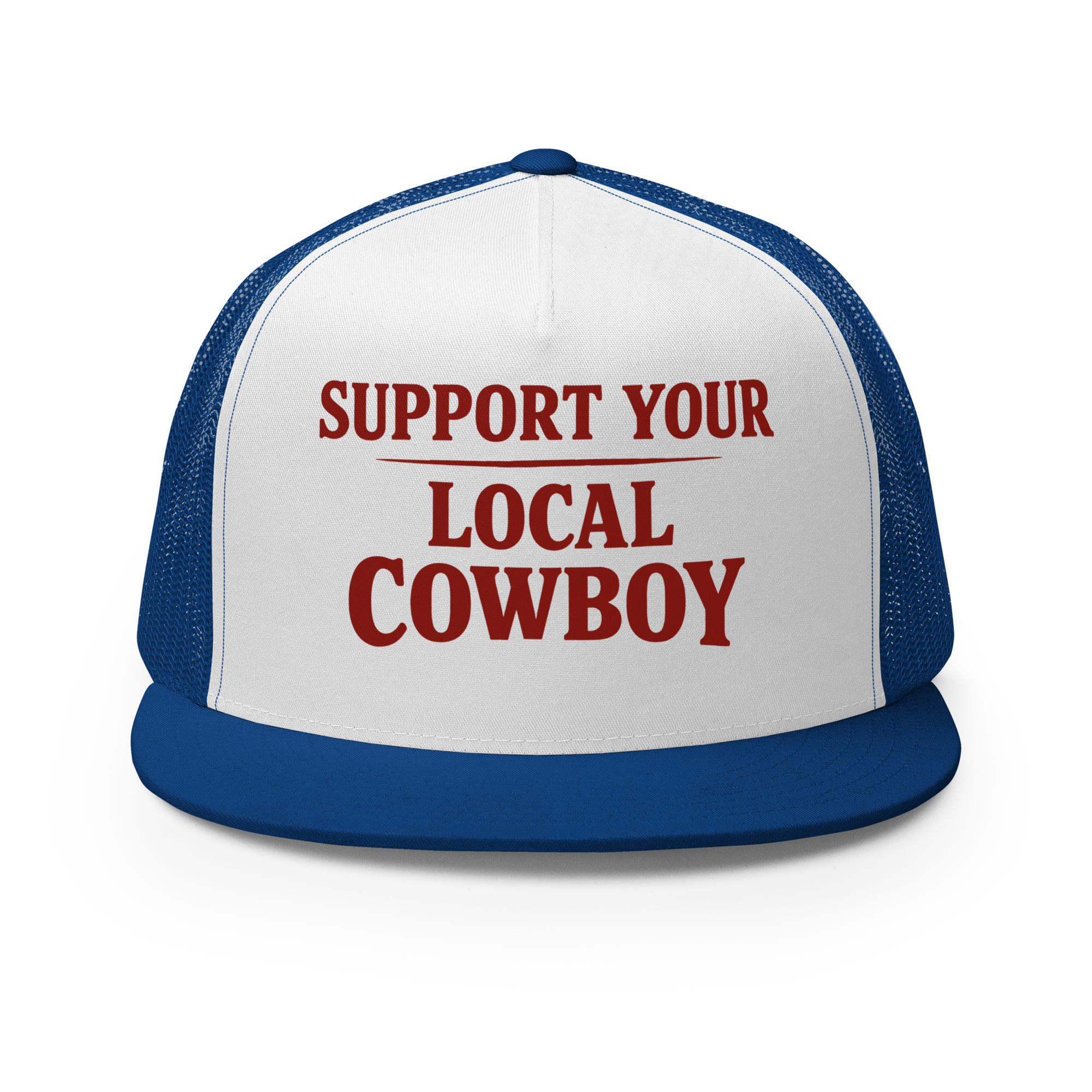 A bold statement with classic Western roots, the Support Your Local Cowboy trucker hat is made for those who live the lifestyle and back the culture. Featuring strong, no-nonsense typography on a timeless mesh silhouette, it’s comfortable, easy to wear, and built for everyday grit. Whether you’re ranch-side, roadside, or just carrying that cowboy mindset wherever you go, this hat says it loud and proud.