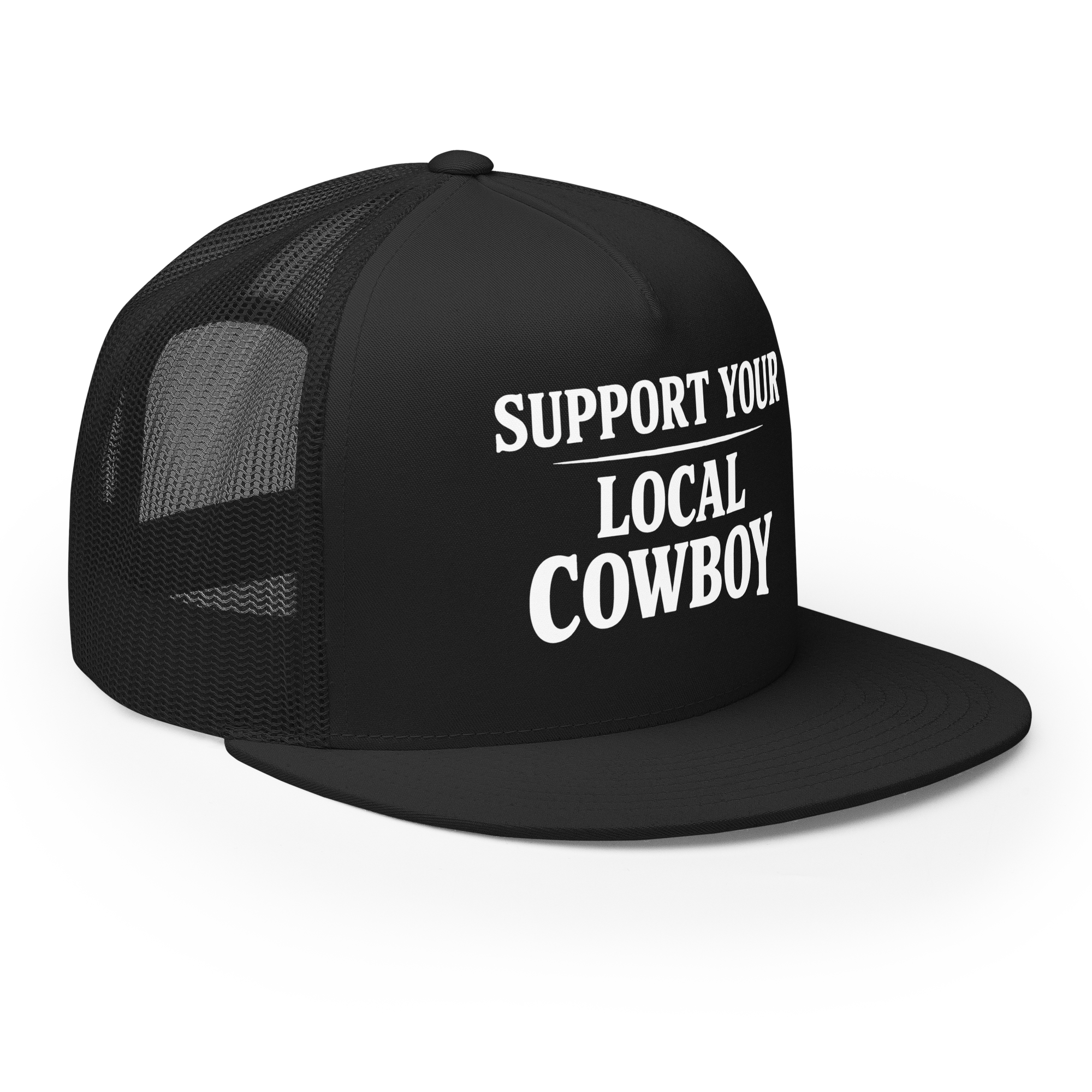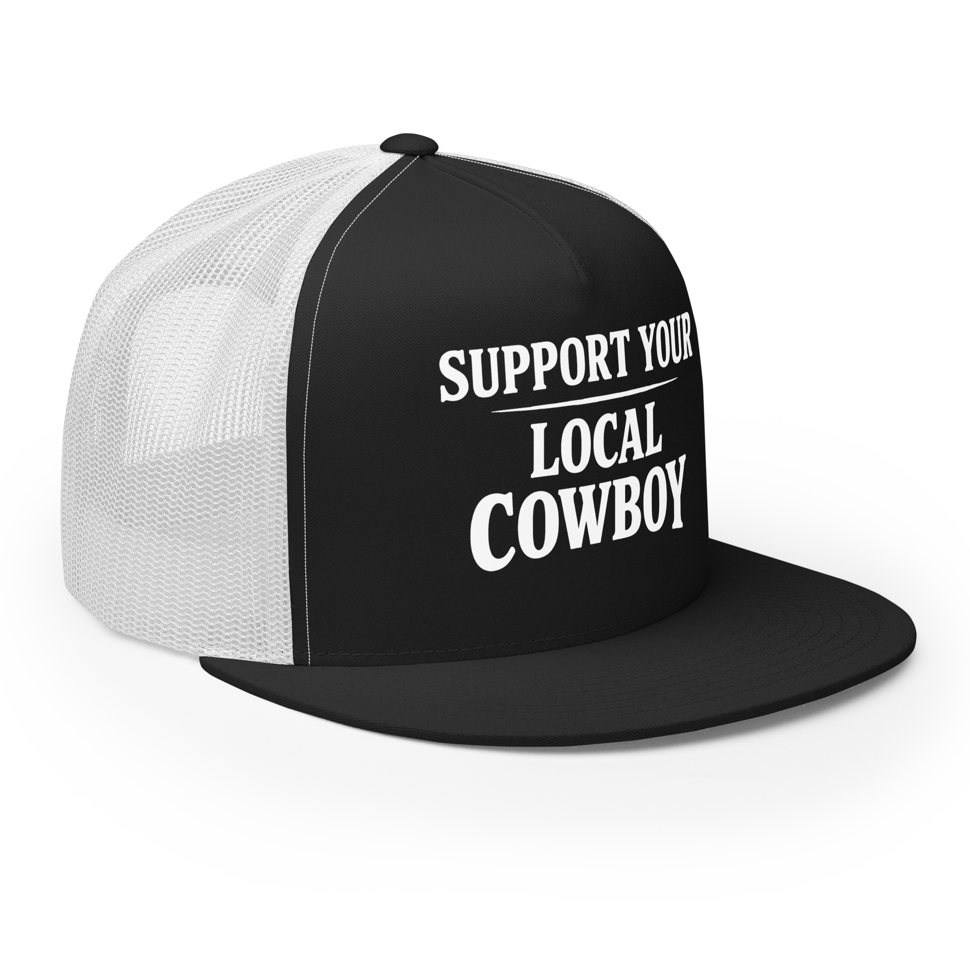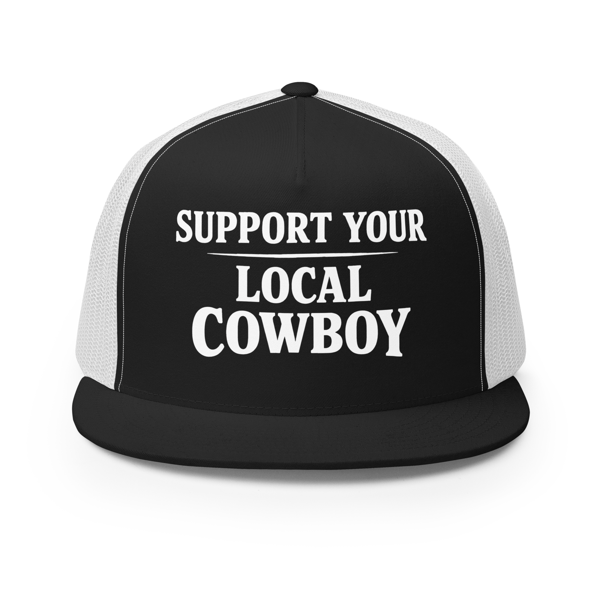 A bold statement with classic Western roots, the Support Your Local Cowboy trucker hat is made for those who live the lifestyle and back the culture. Featuring strong, no-nonsense typography on a timeless mesh silhouette, it’s comfortable, easy to wear, and built for everyday grit. Whether you’re ranch-side, roadside, or just carrying that cowboy mindset wherever you go, this hat says it loud and proud.
